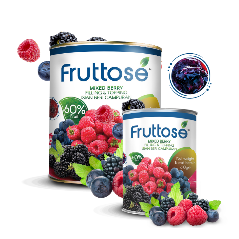 حشوات الفواكه الغنية بقطع الفواكه الطبيعية نسبة 60-90% قابلة للخبز حشوه و تغطية مثالية لجميع أنواع الحلويات الباردة و المخبوزة من شركة فروتوس العالمية FRUTTOSE FRUIT FILLINGS