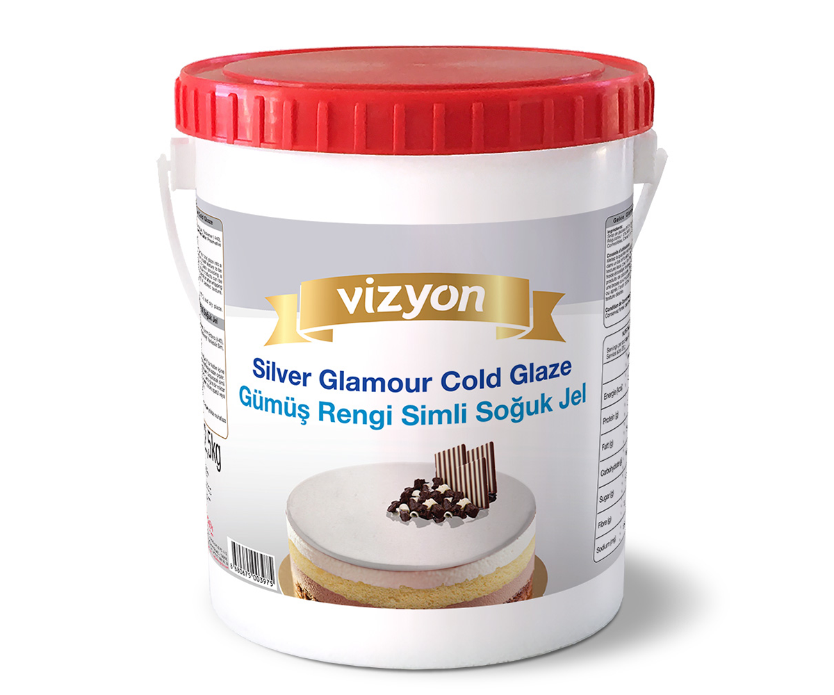 جليز جل تلميع ميتاليك فضي من فيزيون silver vizyon glamour cold glaze مع رذاذ الغلتر الناعم لتغليف الكيك و كافة انواع الحلويات و الفواكه لتعطيها مظهرمثالي انيق و جذاب وايضا تضيف لمعانًا وبريقًا لكعكتك و تحافظ على مظهرها لفترة اكثر من خلال الاحتفاظ بنعومتها ولمعانها ، ستبدو كعكاتك كما لو كانت مغطاة للتو ، حتى بعد عدة أيام من عرضها حيث يقلل الجليز جل التلميع من فيزيون من فقدان الرطوبة ويوفر لمعانًا طويل الأمد