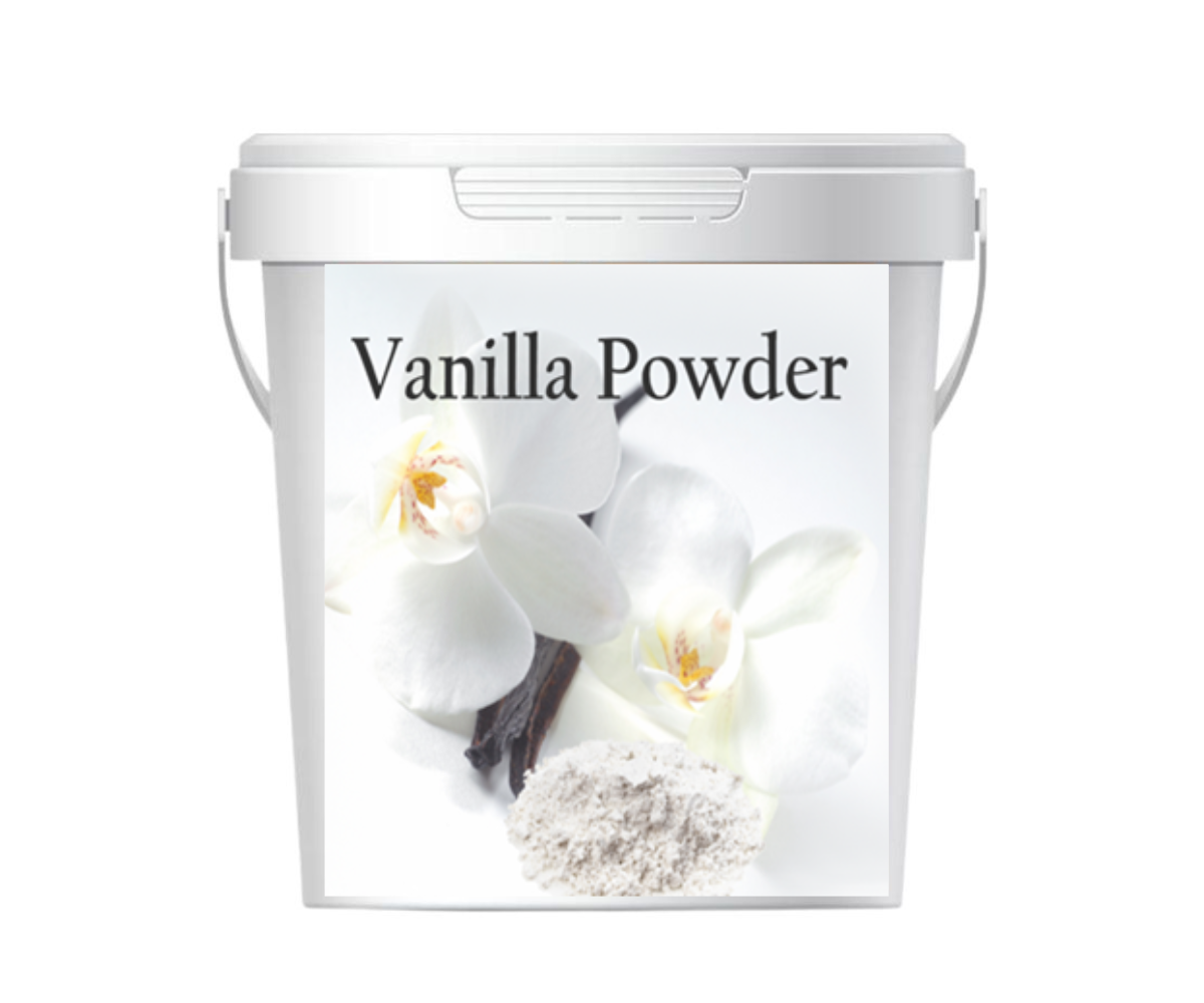 بودرة الفانيلا المركز المركزة المستخلصة من الفانيلا الطبيعية ليعطي طعم اكثر ثباتا و رائحة مميزة يستخدم لجميع انواع الحلويات الباردة و المخبوزة